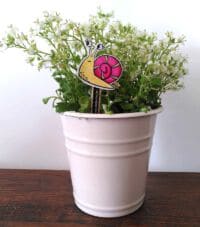 Alternativ lege ich euch auch noch eine weitere schnelle Geschenkidee ans Herz: Ein kleines Kärtchen aus Samenpapier und dazu die Schnecke auf einen Eisstiel geklebt. Das Papier lässt sich einpflanzen und die Schnecke prima in den Blumentopf stecken!